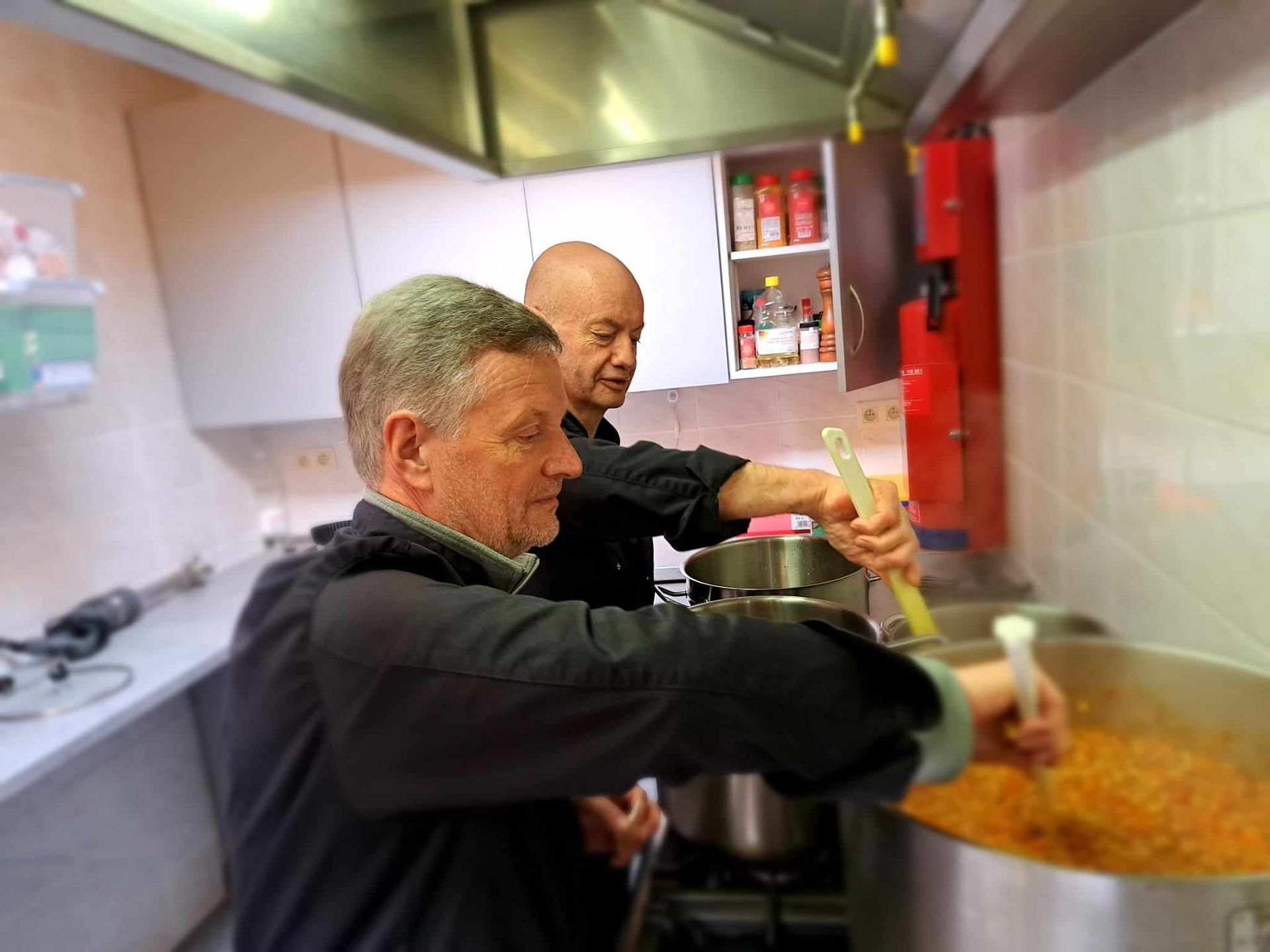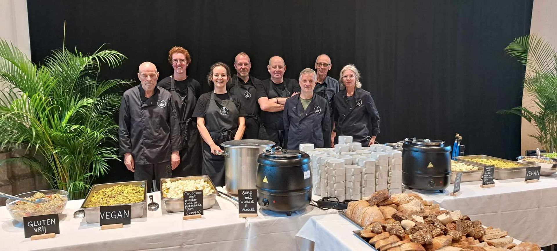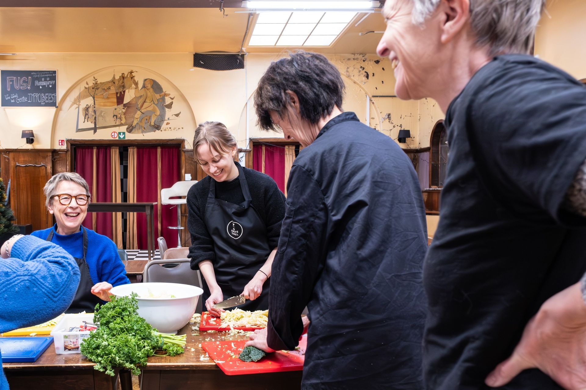 Onze vrijwilligers bereiden wekelijks gezonde maaltijden met lokale producten en voedseloverschotten. Iedereen is welkom, ongeacht je budget. Voor €3 (al dan niet aangevuld met een vrije bijdrage) krijg je een voedzame maaltijd én een plek aan tafel.